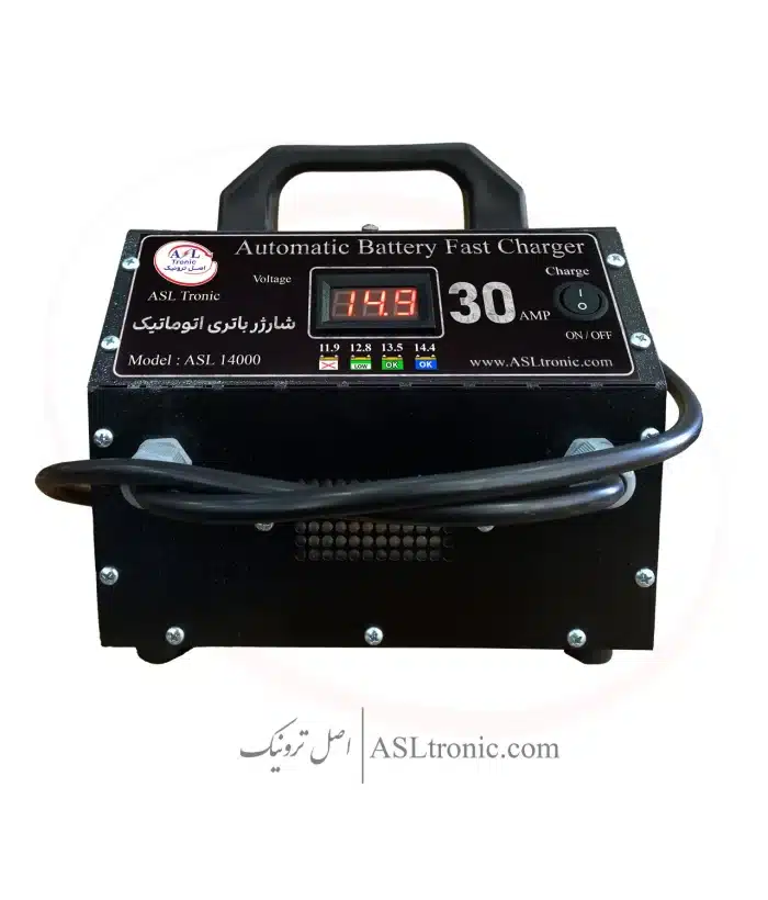 دستگاه شارژر 30 آمپر اتوماتیک ASL14000 جهت شارژر سریع و اتوماتیک انواع باتری های خودرویی ، تراکتور ، باتری های موتوری و یو پی اس می باشد .